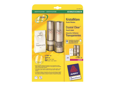 Polyester - brillant - adhésif permanent - limpide - diamètre 40 mm 600 étiquette(s) (25 feuille(s) x 24 étiquettes