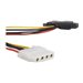Le câble d'alimentation adaptateur SATA vers LP4 LP4SATAFM2L vous permet d'alimenter un disque IDE (connecté sur LP4) à l'aide d'un connecteur d'alimentation SATA à partir de l'alimentation de l'ordinateur. L'adaptateur comprend deux autres connecteurs d'alimentation LP4 et offre la possibilité de brancher deux disques supplémentaires (connectés sur LP4) comme des CD/DVD-ROM, HDD, etc. avec une seule connexion à l'alimentation de l'ordinateur.Ce câble adaptateur d'alimentation LP4/SATA haute qualité offre une conception recherchée qui garantit sa durabilité et il bénéficie d'une garantie à vie StarTech.com.