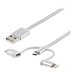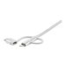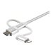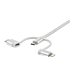 Câble de chargement USB 3 en 1 - Tressé - Certifié Apple MFi - USB 2.0Ce câble USB multi embout permet de charger et de synchroniser facilement vos appareils Apple Lightning ou Android avec un seul câble.Câble USB de chargement 3 en 1Emportez partout ce câble USB vers Micro-USB, USB-C ou Lightning pour charger tous vos appareils, au lieu de transporter plusieurs câbles. Ce câble 3 en 1 vous permet de changer facilement d'appareil et de plateforme. Notez qu'il se connecte à un seul appareil à la fois.Chargez vos appareils à partir d'un chargeur mural USB, d'un chargeur de voiture ou d'une batterie externe. Plus long, ce câble offre une plus grande portée, afin que vous puissiez utiliser facilement votre appareil, même lorsqu'il est connecté à un chargeur.Évitez les nuds et les enchevêtrementsGrâce à sa gaine en nylon tressé, ce câble de chargement robuste se noue et s'emmêle moins facilement qu'un câble non tressé. Il peut ainsi remplacer avantageusement tous vos câbles de chargement.Simplicité d'utilisationPour charger ou synchroniser un appareil mobile USB-C ou Lightning, branchez simplement le connecteur correspondant au connecteur Micro-USB et branchez votre appareil. Pour charger ou synchroniser un appareil Micro-USB, branchez simplement le connecteur du milieu du câble à votre appareil mobile.Ce câble permet de charger ou de synchroniser un seul appareil à la fois.Le câble LTCUB1MGR a reçu la certification Apple MFi et bénéficie de la garantie StarTech.com de 2 ans pour vous assurer des performances fiables et durables.