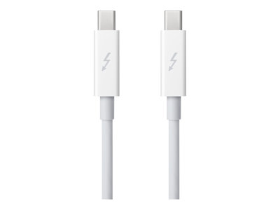 Avec Thunderbolt, vous bénéficiez à la fois de vitesses de transfert de données ultra-rapides et de formidables capacités d'extension. Cette technologie présente deux canaux de données de 10 Gbit/s par port, pour un transfert de données jusqu'à deux fois plus rapide que USB 3 et jusqu'à 12 fois plus rapide que FireWire 800.Utilisez le Câble Thunderbolt Apple pour connecter vos périphériques compatibles Thunderbolt à votre iMac, Mac mini, MacBook Pro ou MacBook Air. Ce câble peut également être utilisé pour le mode disque cible entre deux Mac prenant en charge Thunderbolt, ou pour utiliser un iMac comme moniteur avec un MacBook Pro équipé de Thunderbolt.