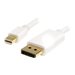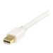 Créez une connexion haute résolution 4k x 2k grâce à la prise en charge HBR2 entre votre ordinateur portable compatible Mini DisplayPort et un écran DisplayPort standardLe câble adaptateur Mini DisplayPort vers DisplayPort MDP2DPMM2MW blanc de 2 mètres comporte un connecteur Mini DP mâle à une extrémité et un connecteur DP mâle à l'autre, ce qui vous permet de brancher tout ordinateur portable compatible Mini DisplayPort (y compris de la gamme de produits Mac ) à un téléviseur HDTV, à un écran ou à un vidéoprojecteur muni d'une connexion DisplayPort standard.Le câble mDP vers DP prend en charge des résolutions élevées jusqu'à 4k x 2k (3840 x 2160) à 60 Hz avec une bande passante HBR2 maximale de 21,6 Gb/s. Ce câble prend également en charge le flux MST (Multi-Stream) pour plusieurs écrans installés en série et offre un support audio en option.Le MDP2DPMM2MW bénéficie d'une fiabilité garantie et pour assurer que le contenu protégé de façon numérique s'affiche correctement grâce à des capacités HDCP et DPCP.Remarque : Les ordinateurs portables et de bureau récents (p. ex., Apple ) sont uniquement équipés de ports Thunderbolt . Nos câbles Mini DisplayPort vers DisplayPort peuvent être connectés à des ports Thunderbolt, ce qui vous permet de brancher vos écrans compatibles DisplayPort.