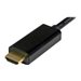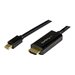 Ce câble adaptateur Mini DisplayPort vers HDMI de 91 cm permet la connexion via un seul câble entre votre ordinateur portable Microsoft Surface Pro, MacBook ou Ultrabook équipé d''un port Mini DP vers un écran ou un vidéoprojecteur HDMI. Cet adaptateur passif prend en charge les résolutions vidéo jusqu''à la norme Ultra HD 4K. Il est également compatible Thunderbolt lorsqu''il est connecté à un port E/S DisplayPort via Thunderbolt.Une qualité d'image étonnanteAvec ce câble adaptateur, vous pourrez obtenir une qualité d''image remarquable quatre fois supérieure à la résolution 1080p, lors de la conversion de Mini DisplayPort vers HDMI.Cet adaptateur est également rétrocompatible avec les écrans et les sources vidéo de résolution inférieure. Grâce à la prise en charge de résolutions haute définition de 1080p et 720p, préparez votre installation existante au format vidéo 4K du futur.Installation pratiqueEn se branchant directement entre la source vidéo Mini DisplayPort et le port HDMI de votre écran, cet adaptateur mDP vers HDMI favorise l''installation la plus simple et discrète qui soit. Pas besoin de source d''alimentation, contrairement à certains convertisseur au format dongle qui nécessitent également un câblage vidéo distinct encombrant.Installation sans enchevêtrement de câblesD''une longueur de 1 m, ce câble adaptateur permet une connexion compacte qui élimine tout superflu, pour une installation nette et professionnelle. Si vous avez besoin de longueur, nous proposons également le câble MDP2HDMM2MB" text="mDP vers HDMI de 2 m (MDP2HDMM2MB), qui vous permet de sélectionner la dimension convenant à votre installation personnalisée.Le modèle MDP2HDMM1MB bénéficie de la garantie StarTech.com de 3 ans et de l'assistance technique à vie gratuite.