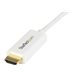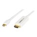 Ce câble adaptateur Mini DisplayPort vers HDMI de 1,8 mètre permet la connexion via un seul câble entre votre ordinateur portable Microsoft Surface Pro, MacBook ou Ultrabook équipé d''un port Mini DP et un écran ou vidéoprojecteur HDMI. L''adaptateur passif prend en charge des résolutions vidéo pouvant atteindre la norme Ultra HD 4K et est compatible Thunderbolt en cas de connexion directe à un port E/S DisplayPort via Thunderbolt.Une qualité d'image étonnanteAvec ce câble adaptateur, vous pourrez obtenir une qualité d''image remarquable quatre fois supérieure à la résolution 1080p, lors de la conversion de Mini DisplayPort vers HDMI.Cet adaptateur est également rétrocompatible avec les écrans et les sources vidéo de résolution inférieure. Grâce à la prise en charge de résolutions haute définition de 1080p et 720p, préparez votre installation existante au format vidéo 4K du futur.Installation pratiqueEn se branchant directement entre la source vidéo Mini DisplayPort et le port HDMI de votre écran, cet adaptateur mDP vers HDMI favorise l''installation la plus simple et discrète qui soit. Pas besoin de source d''alimentation, contrairement à certains convertisseur au format dongle qui nécessitent également un câblage vidéo distinct encombrant.Installation sans enchevêtrement de câblesD''une longueur de 2 m, ce câble adaptateur permet une connexion compacte qui élimine tout superflu, pour une installation nette et professionnelle. Si vous avez besoin de moins de longueur, nous proposons également le câbleMDP2HDMM1MW" text="mDP vers HDMI de 1 m (MDP2HDMM1MW), qui vous permet de sélectionner la dimension convenant à votre installation personnalisée.Le modèle MDP2HDMM2MW est un adaptateur blanc élégant qui sera parfait près de votre ordinateur Mac. De plus, il bénéficie de la garantie StarTech.com de 3 ans et de l''assistance technique à vie gratuite.