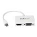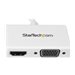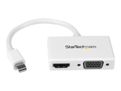 L''adaptateur de voyage Mini DisplayPort MDP2HDVGA vous permet de connecter votre Microsoft Surface Pro, Ultrabook ou ordinateur portable compatible Mini DP à n''importe quel écran VGA ou HDMI . Cet adaptateur élégant présente un design blanc qui s''accordera parfaitement avec votre MacBook Pro ou MacBook Air .Connectez-vous à n'importe quel écran HDMI ou VGAPourquoi transporter plusieurs adaptateurs lorsqu'un seul suffirait ? L'adaptateur de voyage mDP MDP2HDVGA offre les deux sorties VGA et HDMI, ce qui vous évite de garder deux adaptateurs différents à portée de main tout en vous permettant de connecter la sortie mDP de votre ordinateur portable à n''importe quel écran moderne de salle de conférence ou de classe. Une solution plug-and-play idéale pour les applications de bureau BYOD (apportez votre propre appareil).De plus, le convertisseur prend en charge des résolutions pouvant atteindre 1920 x 1200 ou 1080p. Vous pouvez donc convertir une source vidéo Mini DisplayPort en HDMI ou VGA sans compromettre la qualité vidéo.Tirez le maximum de la portabilitéL'adaptateur de voyage audio-vidéo maximise la portabilité grâce à sa conception compacte et légère. Sa conception pratique rend cet adaptateur aussi transportable que votre ordinateur portable. Il peut être facilement rangé dans sa sacoche ou son étui de transport et évite de devoir emporter plus d'un adaptateur. Avec cet adaptateur, vous pouvez virtuellement vous rendre dans n'importe quelle salle de conférence et faire une excellente première impression par votre préparation. Vous n'aurez pas à vous sentir gêné de devoir fouiller dans votre sac à la recherche du bon connecteur.Ce convertisseur 2 en 1 est compatible avec le port Intel Thunderbolt de votre PC ou de votre Mac, et peut être facilement installé sans logiciel ni pilote.Le modèle MDP2HDVGAW bénéficie de la garantieStarTech.com de 3 ans et de l'assistance technique à vie gratuite.