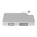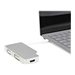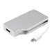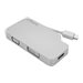 Cet adaptateur de voyage 3 en 1 offre une solution portable pour connecter votre ordinateur Mini DisplayPort à un écran VGA, DVI ou HDMI .L''adaptateur est certifié VESA pour assurer la compatibilité avec votre ordinateur Mini DP.Connectivité attrayante pour MacBook Pro et MacBook AirCet adaptateur de voyage possède un boîtier robuste en aluminium et un câble Mini DisplayPort blanc pur intégré. Outre son excellente allure, l''adaptateur fonctionne parfaitement avec tout appareil Mini DP et s''adapte harmonieusement à votre MacBook Air ou MacBook Pro.Connectivité vidéo tout-en-un, idéale pour voyagerInutile de remplir votre sac d''ordinateur avec des convertisseurs multiples pour vos différents écrans, cet adaptateur 3 en 1 vous procurera toutes les sorties vidéo dont vous aurez besoin. Avec des sorties VGA, DVI et HDMI, cet adaptateur permet de connecter le port Mini DisplayPort de votre ordinateur à un écran de salle de classe ou de conférence, sans avoir à transporter un adaptateur différent pour chaque type d''écran.Compact, léger et prenant en charge plusieurs sorties vidéo, cet adaptateur constitue la solution plug-and-play idéale pour les applications de bureau BYOD (Apportez votre propre appareil) ou de voyage.Gestionnaire de câbles intégré et innovantL''adaptateur présente un dispositif magnétique de fixation intégré pour la gestion des câbles. L''aimant permet de maintenir le câble intégré en place pour un stockage rapide et sécurisé pendant votre voyage, tandis que l''adaptateur sera soigneusement rangé dans votre sac de voyage.Qualité d''image remarquable prenant en charge Ultra HD 4KLa sortie HDMI de cet adaptateur prend en charge les résolutions Ultra HD 4K tout en fournissant une qualité d''image quatre fois supérieure à la résolution haute définition 1080p. La sortie HDMI est également rétrocompatible avec les résolutions plus basses, comme 1080p et 720p, ce qui en fait un adaptateur parfait pour votre équipement vidéo d''ancienne génération. Les sorties VGA et DVI prennent aussi en charge une résolution maximale haute définition pouvant atteindre jusqu''à 1920 x 1200, vous permettant de jouir d''une qualité vidéo excellente.L''adaptateur de voyage est compatible avec les périphériques Thunderbolt Intel Mini DP pouvant émettre un signal DisplayPort.Le modèle MDPVGDVHD4K bénéficie de la garantie StarTech.com de 3 ans et de l''assistance technique à vie gratuite.