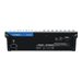 Type de connecteur | | 8 x entrée audio ligne / microphone (XLR / téléphone stéréo 6,3 mm) - haut 2 x microphone (XLR) - haut 4 x entrée de ligne audio (6,3 mm téléphone) - haut 2 x entrée de ligne audio (phono RCA x 2) - haut 4 x envoi AUX (6,3 mm téléphone) - haut 1 x sortie pour moniteur (Stéréo téléphone 6,3 mm x 2) - haut 1 x casque (stéréo téléphonique 6,3 mm) - haut 1 x sortie audio équilibrée (XLR x 2) - haut 1 x sortie audio équilibrée (Stéréo téléphone 6,3 mm x 2) - haut 1 x USB 2.0 (USB à 4 broches, type B) - arrière