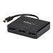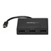 Ce hub MST vous permet de brancher trois moniteurs DisplayPort à votre ordinateur Mini DisplayPort. MST peut être utilisé sur n'importe quel appareil Windows prenant en charge DisplayPort 1.2, comme des modèles Lenovo Think Pad et Microsoft Surface . Lorsqu'il est connecté à des révisions précédentes de DisplayPort, comme DP 1.1, le hub MST tient lieu de répartiteur vidéo.Augmentez votre productivité avec plusieurs moniteursPlus portables que jamais, les nouvelles générations d'ordinateurs portables comportent cependant moins de sorties vidéo, et leur écran intégré est petit. Le hub MST résout ces problèmes en vous permettant de brancher trois écrans indépendants à un seul port Mini DP de votre ordinateur, ce qui facilite considérablement le fonctionnement multitâche. Grâce au hub MST, vous pouvez étendre votre ordinateur de bureau sur des moniteurs supplémentaires et diffuser sur chacun d'entre eux du contenu indépendant afin d'augmenter votre productivité tout en profitant d'un fonctionnement multitâche. Cela est idéal pour créer une solution de bureau partagé facile à connecter à une station d'accueil avec un jeu de périphériques comprenant un clavier et une souris sans fil. Vous pouvez également diffuser la même image sur plusieurs écrans dans des applications de visualisation à distance, comme l''affichage numérique.Une qualité d'image étonnante, qui n'entravera pas les ressources de votre systèmeLa technologie MST utilise votre carte vidéo existante pour réduire au minimum l'utilisation des ressources de votre système tout en permettant des résolutions Ultra HD 4K. La résolution 4K est prise en charge par les derniers périphériques audio-vidéo et offre quatre fois la résolution de 1080p. Par ailleurs, le hub MST peut diffuser en haute définition (1080p), il est donc idéal pour les applications nécessitant une haute résolution, comme le graphisme et l'imagerie médicale.Fonctionne avec n'importe quel moniteur, téléviseur ou vidéoprojecteurAvec ce hub MST, vous pouvez utiliser des adaptateurs vidéo Mini DP afin de brancher des écrans DVI, VGA ou HDMI, ce qui assure la compatibilité avec tous vos moniteurs existants. Doté des certifications VESA et DisplayPort, le hub prend en charge les systèmes DP 1.2, ce qui facilite son intégration à votre équipement vidéo actuel.Le modèle MSTMDP123DP a été certifié par Microsoft et sa compatibilité avec les appareils Microsoft Surface Pro 3, Surface Pro 4 et Surface Book a été vérifiée. Il bénéficie en outre d''une garantie StarTech.com de 2 ans et d''une assistance technique à vie gratuite.