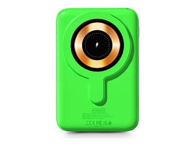 Banque d'alimentation sans fil - magnétique, compatible Magsafe - Li-pol - 10000 mAh - 38.5 Wh - 22.5 Watt - 4.5 A - 2 connecteurs de sortie (USB-C, USB type A) - sur le câble : USB-C - vert fluo