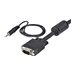 Le câble VGA haute résolution MXTHQMM5MA de 5 m avec audio est un câble SVGA de qualité supérieure conçu pour obtenir la meilleure qualité vidéo qui soit sur votre écran VGA. Cette solution à un seul câble permet d'effectuer un branchement vidéo entre une carte vidéo VGA et un moniteur VGA, et un branchement audio entre une carte son et un appareil audio externe.Ce câble VGA haute résolution avec audio StarTech.com comporte un câble coaxial mâle-mâle de qualité supérieure, conçu pour éliminer les images fantômes et floues propres aux câbles non coaxiaux et assurer une protection supérieure contre les interférences EMI en ayant recours aux tores magnétiques situés près des extrémités du connecteur.Ce câble VGA de 5 mètres (câble VGA avec audio) bénéficie de la garantie à vie StarTech.com.