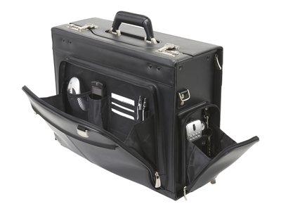 AeroCase de DICOTA est le compagnon idéal de vos déplacements pour transporter votre ordinateur portable, votre imprimante ou votre projecteur et leurs accessoires et vos documents indispensables. Proposée en simili-cuir particulièrement solide, cette mallette possède une poignée intégrée et un cadre renforcé. Le compartiment pour ordinateur portable rembourré est également recouvert sur le dessus pour protéger les fiches de l'appareil. L'imprimante, le projecteur ou un classeur de format A4 trouvent place dans le grand compartiment principal et des soufflets en accordéon peuvent accueillir tous vos documents. La pochette zippée verrouillable permet de ranger vos accessoires. Une pochette séparée est prévue pour les câbles. Les serrures à combinaison à chiffres offrent une sécurité supplémentaire, très appréciable en déplacement.