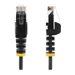 Ce câble CAT6 fin répond à toutes les spécifications de câble patch de catégorie 6 et fournit une connexion réseau Gigabit fiable dans les centres de données haute densité.Passage facile des câblesLa conception de ce câble de connexion CAT6 fin est 36 % plus fine que celle des câbles réseau standard pour une meilleure circulation de l''air et une meilleure dissipation de la chaleur dans les espaces restreints. Le câble est également plus flexible que les câbles Ethernet standard, ce qui facilite le passage des câbles dans les racks réseau encombrés.Ce câble est doté de connecteurs sans crochet qui protègent les connecteurs de câble RJ45 contre les déchirures et les ruptures pendant l''installation dans des espaces restreints.Protégez votre équipementCe câble patch CAT6 est testé conformément aux exigences de la norme ANSI/TIA 568 C.2 Catégorie 6, garantissant ainsi une connexion fiable à votre équipement réseau. Certifié conforme à la classification incendie LSZH (Low Smoke Zero Halogen), ce câble de connexion garantit une connexion sûre.Les connecteurs dorés de 50 microns du câble patch fournissent une conductivité optimale tout en éliminant les pertes de signal dues à l''oxydation ou à la corrosion.Construction de haute qualitéChaque câble CAT6 est fabriqué à partir des meilleurs conducteurs en cuivre et confectionné puis testé avec soin afin de maintenir la paradiaphonie (NEXT) à un niveau nettement inférieur aux limites acceptables. De plus, chaque câble est conçu avec un fil de cuivre de 0,08 mm pour garantir des performances optimales pour vos applications Ethernet exigeantes.Le modèle N6PAT200CMBKS bénéficie de la garantie à vie StarTech.com et de l''assistance technique à vie gratuite.