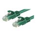 Ce câble CAT6 répond à toutes les spécifications des câbles de catégorie 6 pour fournir une connexion réseau Gigabit fiable.Protégez votre équipementCe câble patch CAT6 est composé de fil 100 % cuivre et testé conformément aux exigences de la norme ANSI/TIA 568 C.2, catégorie 6. Nous n''utilisons pas de fil en aluminium recouvert de cuivre (CCA) puisque ce dernier est sujet à des problèmes tels qu''une mauvaise circulation du courant, une accumulation de chaleur, des dégâts matériels et un risque d''incendie.Les connecteurs dorés de 50 microns fournissent une conductivité optimale tout en éliminant les pertes de signal dues à l''oxydation ou à la corrosion.Construction de haute qualitéLe câble CAT6 est fabriqué à partir des meilleurs conducteurs en cuivre et confectionné puis testé avec soin afin de maintenir la paradiaphonie (NEXT) à un niveau nettement inférieur aux limites acceptables. Le câble patch est fabriqué avec un fil de cuivre de 0,25 mm pour garantir des performances optimales pour les applications Ethernet exigeantes comme Power-over-Ethernet et le streaming de vidéos 4K ou 1080p.Installation facile de vos câbles réseauPour un câblage sans heurts, ce câble durable est doté de connecteurs sans crochet qui protègent les connecteurs de câble RJ45 des déchirures et des ruptures pendant l''installation.Le câble Ethernet CAT6 est également équipé de capuchons destinés à atténuer la tension en protégeant les connecteurs RJ45 contre les torsions à des angles excessifs. Il y a ainsi moins de risques d''endommager les câbles et d''affecter les performances et la connectivité réseau.Le modèle N6PATC150CMGN bénéficie d''une garantie à vie StarTech.com pour une fiabilité sans faille.