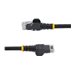 Le câble patch Cat6 N6PATC2MBK (2 m) respecte ou dépasse toutes les spécifications des câbles de catégorie 6 pour assurer une connexion fiable aux réseaux Gigabit. Il est équipé d'une fiche PVC noire durable qui permet de coder l'acheminement des câbles au besoin.Durable, ce câble patch Cat6 de qualité supérieure est fabriqué sans crochet, ce qui contribue à protéger les clips du connecteur RJ45 et à éviter qu'il se coince pendant l'installation. Parallèlement, son serre-câble moulé en PVC empêche les terminaisons du connecteur RJ45 de trop se plier et réduit, du même coup, les risques de dommages pouvant compromettre le bon fonctionnement du réseau.Fait uniquement de matériaux de la meilleure qualité, ce câble patch Cat6 propose un rendement fiable et bénéficie de notre garantie à vie.100 % cuivre, pour une qualité supérieureLes câbles Cat6 de StarTech.com sont fabriqués avec des conducteurs en cuivre de qualité supérieure. Alors que de nombreux fabricants proposent des câbles " meilleur marché ", avec une âme en aluminium plaqué cuivre, nous refusons tout compromis sur la qualité afin que vous tiriez la meilleure valeur et le meilleur rendement de votre câble réseau.Fil 24 AWGCe câble Cat6 est fait de fil de cuivre de calibre 24 pour prendre en charge une vaste gamme d'applications Ethernet comme Power over Ethernet (PoE). Etant donné que nous employons un fil de cuivre de qualité supérieure, nos câbles gèrent facilement la puissance nécessaire à ces types d'applications. En revanche, les câbles d'aluminium plaqué cuivre, de qualité inférieure, supportent mal la puissance exigée et ont tendance à chauffer, à endommager l'équipement et potentiellement, à provoquer des incendies.Connecteurs or 50 micronsCe câble patch Cat6 est équipé de connecteurs de qualité supérieure faits d'or à 50 microns, d'une conductivité optimale permettant d'éliminer la perte de signal due à l'oxydation ou la corrosion.