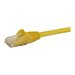 Ce câble Cat6 assure des connexions réseau Gigabit fiables, garantissant ainsi la capacité nécessaire à vos applications Ethernet exigeantes.Recherchez la longueur et la couleur dont vous avez besoinCe câble patch jaune de 5 m est parfaitement adapté à une utilisation dans les conduits et canalisations réseau. Il est destiné aux applications longue distance, par exemple d'un hub à un jack mural le long d'un poteau ou à travers le bureau.Pour des installations réseau simplifiées, nos câbles patch Cat6 sont disponibles dans une grande variété de longueurs et de couleurs. Vous disposez ainsi toujours de la longueur de câble dont vous avez besoin et pouvez appliquer un code couleur à vos branchements pour une installation mieux organisée.Les connecteurs de câble RJ45 sans crochet assurent la protection de vos connexions réseauPour un câblage sans heurts, ce câble durable est doté de connecteurs sans crochet qui protègent les connecteurs de câble RJ45 des déchirures et des ruptures pendant l'installation.Il est également équipé de capuchons destinés à atténuer la tension en protégeant les extrémités du connecteur RJ45 des torsions excessives. Ceci réduit le risque d'endommager le câble et d'affecter les performances et la connectivité réseau.100 % cuivre pour une valeur exceptionnelleBénéficiez d'un rapport qualité-prix maximal en investissant dans nos câbles Cat6. Chacun de nos câbles patch est fabriqué à partir des meilleurs conducteurs en cuivre et est confectionné et testé avec soin afin de maintenir la paradiaphonie (NEXT) à un niveau nettement inférieur aux limites acceptables.Fil de 0,25 mm pour une connexion réseau hautes performancesAssurez la capacité nécessaire à vos applications Ethernet exigeantes, telles que Power-over-Ethernet et la diffusion vidéo en flux continu 4K ou 1080p, grâce à des câbles dotés d'un fil de cuivre de 0,25 mm .Les connecteurs dorés de 50 microns garantissent une conductivité maximaleVous pouvez compter sur nos connecteurs RJ45 pour vous fournir une conductivité optimale tout en éliminant les pertes de signal dues à l'oxydation ou à la corrosion.Le modèle N6PATC5MYL bénéficie de la garantie à vie StarTech.com pour une fiabilité à toute épreuve.