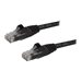 Ce câble CAT6 répond à toutes les spécifications des câbles de catégorie 6 pour fournir une connexion réseau Gigabit fiable.Protégez votre équipementCe câble patch CAT6 est composé de fil 100 % cuivre et testé conformément aux exigences de la norme ANSI/TIA 568 C.2, catégorie 6. Nous n''utilisons pas de fil en aluminium recouvert de cuivre (CCA) puisque ce dernier est sujet à des problèmes tels qu''une mauvaise circulation du courant, une accumulation de chaleur, des dégâts matériels et un risque d''incendie.Les connecteurs dorés de 50 microns fournissent une conductivité optimale tout en éliminant les pertes de signal dues à l''oxydation ou à la corrosion.Construction de haute qualitéLe câble CAT6 est fabriqué à partir des meilleurs conducteurs en cuivre et confectionné puis testé avec soin afin de maintenir la paradiaphonie (NEXT) à un niveau nettement inférieur aux limites acceptables. Le câble patch est fabriqué avec un fil de cuivre de 0,25 mm pour garantir des performances optimales pour les applications Ethernet exigeantes comme Power-over-Ethernet et le streaming de vidéos 4K ou 1080p.Installation facile de vos câbles réseauPour un câblage sans heurts, ce câble durable est doté de connecteurs sans crochet qui protègent les connecteurs de câble RJ45 des déchirures et des ruptures pendant l''installation.Le câble Ethernet CAT6 est également équipé de capuchons destinés à atténuer la tension en protégeant les connecteurs RJ45 contre les torsions à des angles excessifs. Il y a ainsi moins de risques d''endommager les câbles et d''affecter les performances et la connectivité réseau.Le modèle N6PATC750CMBK bénéficie d''une garantie à vie StarTech.com pour une fiabilité sans faille.