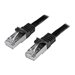 Ce câble Cat6 de 2 m respecte ou dépasse toutes les spécifications des câbles de catégorie 6 pour assurer une connexion réseau Gigabit fiable. Et comme, en plus, son blindage protège votre réseau contre les interférences électromagnétiques (EMI/RFI) et le bruit du système, il constitue la solution parfaite pour des connexions réseau rapides et sûres.Connexions Gigabit Cat 6 fiablesIntégralement en cuivre et en fil à paire torsadée à blindage en feuille d'aluminium, ce câble assure une performance de qualité supérieure. Il est conçu pour faire circuler les signaux de données dans votre réseau sans aucune interférence. Il est donc parfait pour les milieux très vulnérables aux EMI.Les connecteurs en or à 50 microns optimisent la conductivité tout en éliminant la perte de signal causée par l'oxydation ou la corrosion.Connexions réseau sécuriséesLes connecteurs sans crochet facilitent le passage des câbles en protégeant les clips RJ45 pendant l'installation : ils sont moins susceptibles de s'accrocher ou de casser. Et puisque le câble reste solidement branché dans le port, la connexion est plus fiable.De plus, les tétines moulées empêchent les terminaisons du connecteur RJ45 de se plier et réduisent, du même coup, les risques de dommages pouvant compromettre le bon fonctionnement du réseau.Le modèle N6SPAT2MBK bénéficie de la garantie à vie StarTech.com, pour une fiabilité assurée.