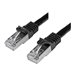 Ce câble Cat6 de 3 m respecte ou dépasse toutes les spécifications des câbles de catégorie 6 pour assurer une connexion réseau Gigabit fiable. Et comme, en plus, son blindage protège votre réseau contre les interférences électromagnétiques (EMI/RFI) et le bruit du système, il constitue la solution parfaite pour des connexions réseau rapides et sûres.Connexions Gigabit Cat 6 fiablesIntégralement en cuivre et en fil à paire torsadée à blindage en feuille d'aluminium, ce câble assure une performance de qualité supérieure. Il est conçu pour faire circuler les signaux de données dans votre réseau sans aucune interférence. Il est donc parfait pour les milieux très vulnérables aux EMI.Les connecteurs en or à 50 microns optimisent la conductivité tout en éliminant la perte de signal causée par l'oxydation ou la corrosion.Connexions réseau sécuriséesLes connecteurs sans crochet facilitent le passage des câbles en protégeant les clips RJ45 pendant l'installation : ils sont moins susceptibles de s'accrocher ou de casser. Et puisque le câble reste solidement branché dans le port, la connexion est plus fiable.De plus, les tétines moulées empêchent les terminaisons du connecteur RJ45 de se plier et réduisent, du même coup, les risques de dommages pouvant compromettre le bon fonctionnement du réseau.Le modèle N6SPAT3MBK bénéficie de la garantie à vie StarTech.com, pour une fiabilité assurée.