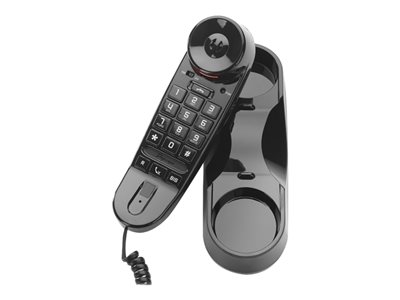 Robuste téléphone compact avec support pour utilisation mobile ou murale.