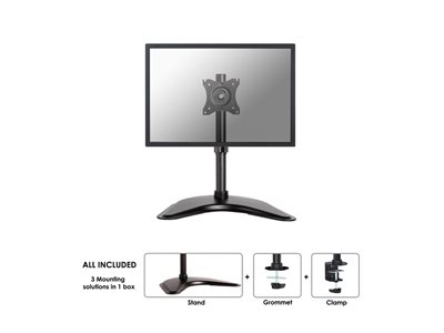 Le support de bureau Neomounts Select, modèle NM-D335BLACK, est un montage inclinable, pivotant et rotatif, pour écrans plats jusqu'à 30" (76 cm). Ce support est un excellent choix pour économiser de l'espace sur les bureaux en l'installant à l'aide d'une pince de bureau, pied ou illet à monter.La technologie de Neomounts Select, inclinaison de 90°, rotation de 360° et pivot de 180°, permet au montage de changer l'angle de vue pour profiter pleinement des capacités de l'écran. Le montage est facile, réglable en hauteur jusqu'à 46 centimètres. Profondeur réglable 8 centimètres. Une gestion des câbles unique cache et achemine les câbles pour garder le lieu de travail bien rangé.Neomounts Select NM-D335BLACK a un point de pivot et est adapté pour les écrans jusqu'à 30" (76 cm). La capacité de poids de ce produit est de 10 kg. Ce support de bureau est adapté pour les écrans qui répondent au VESA 75x75 ou 100x100 mm. Différents modèles de trous peuvent être couverts à l'aide des plaques d'adaptation Neomounts Select VESA.Des maux de cou et de dos peuvent être évités en utilisant un montage ergonomique. Idéal pour une utilisation dans les bureaux et sur les comptoirs ou dans une zone de réception.