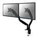 Le support de bureau Neomounts Select, modèle NM-D750D, s'incline, se tourne et pivote. Ce support est un excellent choix pour économiser de l'espace sur les bureaux en l'installant à l'aide d'une pince de bureau ou illet à monter.La technique de Neomounts Select, inclinaison de 180°, rotation de 180° et pivot de 180°, permet au montage de changer l'angle de vue pour profiter pleinement des capacités des écrans plats. La hauteur est facilement réglable jusqu'à 51 centimètres grâce à un ressort à gaz. La profondeur est réglable jusqu'à 61 cm. Une gestion des câbles unique cache et achemine les câbles pour garder le lieu de travail bien rangé.Le Neomounts Select NM-D750D a trois points de pivot et est adapté pour 2 écrans jusqu'à 32". La capacité de poids de ce produit est de 9 kg chaque écran. Ce support de bureau est adapté pour les écrans qui répondent au VESA 75 x 75 ou 100 x 100 mm.Des maux de cou et de dos peuvent être évités en utilisant un montage ergonomique. Idéal pour une utilisation dans les bureaux et sur les comptoirs ou dans une zone de réception.