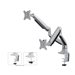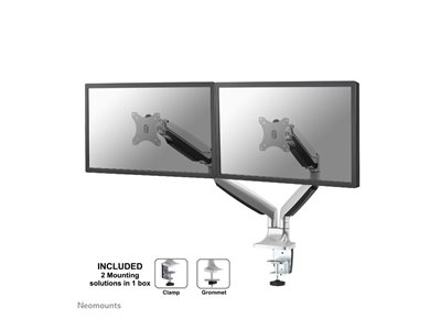 Le support de bureau Neomounts Select, modèle NM-D750D, s'incline, se tourne et pivote. Ce support est un excellent choix pour économiser de l'espace sur les bureaux en l'installant à l'aide d'une pince de bureau ou illet à monter.La technique de Neomounts Select, inclinaison de 180°, rotation de 180° et pivot de 180°, permet au montage de changer l'angle de vue pour profiter pleinement des capacités des écrans plats. La hauteur est facilement réglable jusqu'à 51 centimètres grâce à un ressort à gaz. La profondeur est réglable jusqu'à 61 cm. Une gestion des câbles unique cache et achemine les câbles pour garder le lieu de travail bien rangé.Le Neomounts Select NM-D750D a trois points de pivot et est adapté pour 2 écrans jusqu'à 32". La capacité de poids de ce produit est de 9 kg chaque écran. Ce support de bureau est adapté pour les écrans qui répondent au VESA 75 x 75 ou 100 x 100 mm.Des maux de cou et de dos peuvent être évités en utilisant un montage ergonomique. Idéal pour une utilisation dans les bureaux et sur les comptoirs ou dans une zone de réception.