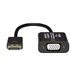 Le convertisseur actif Tripp Lite 6 pouces DisplayPort to VGA Adapter permet aux appareils utilisant la technologie DisplayPort d'afficher des images sur des moniteurs VGA. Cet adaptateur est conçu avec des capacités de régénération de signal pour la performance, assurant une sortie vidéo fiable tout en fournissant une image claire et nette. Sa taille compacte le rend idéal pour une utilisation portable. Il se glisse facilement dans une mallette ou une poche pour être transporté lors d'une réunion ou d'une présentation.Le convertisseur est équipé d'un connecteur DisplayPort 20 broches mâle d'un côté et d'un connecteur HD D-Sub (VGA) 15 broches femelle de l'autre, ce qui en fait une solution polyvalente pour connecter divers appareils. Les connecteurs plaqués or améliorent la durabilité et l'intégrité du signal, tandis que les caractéristiques de décharge de traction protègent le câble de l'usure. Conforme aux normes Plug-and-Play, cet adaptateur permet une installation rapide et sans souci pour vous permettre de vous connecter sans délai.