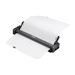 Ce guide papier se clipse facilement sur votre imprimante PocketJet pour faciliter l'alimentation en feuilles individuelles. La partie supérieure se replie pour révéler les guides de largeur réglable qui s'adaptent aux formats de papier ou d'étiquettes souhaités et permettent une alimentation et une impression droites. Rabattez la partie supérieure pour faciliter la manipulation, le transport et le stockage. La conception de l'imprimante vous permet d'accéder pleinement aux ports USB et d'alimentation situés sur le côté de l'imprimante, ainsi qu'aux boutons d'alimentation, d'alimentation du papier et aux boutons radio situés sur le dessus de l'imprimante.