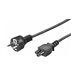 Les câbles de connexion Schuko (CEE 7/7) sont approuvés pour les pays européens tels que l'Allemagne, la France, l'Autriche et bien d'autres. Ce cordon d'alimentation avec connecteur IEC-60320-C5, également appelé "Mickey Mouse", vous permet de connecter votre ordinateur portable ou votre bloc d'alimentation à une source d'énergie.