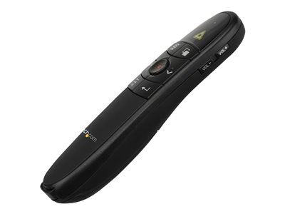 Grâce à cette télécommande de présentation qui réunit navigation intuitive et pointeur laser sur un même boîtier compact, votre argumentaire est plus fluide que jamais.Captivez votre publicRester devant votre ordinateur n'est pas la tactique la plus efficace pour faire une présentation, en particulier si vous cherchez à impliquer votre public.Avec une portée sans fil de 27 m, cette télécommande de présentation vous permet de contrôler votre écran et votre présentation comme si vous étiez devant votre ordinateur tout en vous déplaçant librement dans la pièce. C'est la solution idéale pour faire des présentations dans de grandes salles de conférences.Concentrez l'attention de votre publicGrâce à son pointeur laser intégré, la télécommande de présentation vous permet de concentrer l'attention de votre public sur les informations critiques. Ce pointeur laser est idéal pour montrer à votre public des présentations PowerPoint , des sites Web ou tout autre document.Restez parfaitement équipé, même pendant vos déplacementsCette télécommande est à la fois élégante et ergonomique. Elle est fournie avec des piles et un étui protecteur de transport pour l'emporter partout où vous allez. En outre, vous pouvez ranger le récepteur sans fil dans la télécommande de présentation lorsque vous ne l'utilisez pas. Le récepteur USB est pris en charge par les pilotes HID génériques et fonctionne donc avec presque tous les ordinateurs Mac ou Windows .Le modèle PRESMOTE bénéficie de la garantie StarTech.com de 2 ans et de l'assistance technique à vie gratuite.