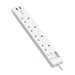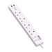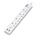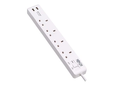 BS1363A Outlets, 220-250V, 13A, 1.8 m Cord, BS1363A Plug, White - Coupe-circuit - 13 A - CA 230 V - entrée : BS 1363A - connecteurs de sortie : 4 (2 x USB, 4 x BS 1363A) - 1.8 m cordon - blanc