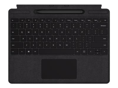 La polyvalence monte d'un cran avec ces deux accessoires. Le Surface Slim Pen se range en toute sécurité et se recharge sur le clavier Surface Pro X Signature Keyboard with Slim Pen, équipé d'un grand pavé tactile en verre et d'un revêtement luxueux en Alcantara.