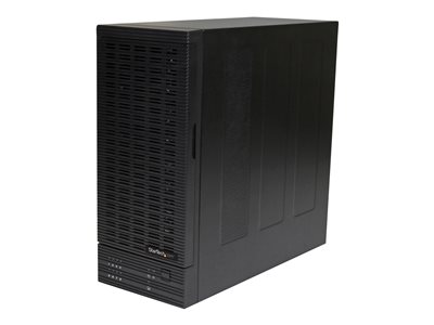 Le boîtier pour disque dur amovible à 8 baies S358BU33ERM vous permet d'accéder simultanément à 8 disques durs individuels 2,5 po ou 3,5 po au moyen d'un port unique eSATA ou USB.Pour un fonctionnement rapide et un transfert efficace des données, le boîtier de lecteur de disque dur prend en charge des vitesses SATA III complètes jusqu'à 6 Gb/s lorsqu'il est branchée à un port eSATA. Pour une compatibilité universelle, il est possible de brancher le boîtier à un port USB 3.0 pour obtenir un transfert jusqu'à 5 Gb/s et la prise en charge UASP permettant un transfert jusqu'à 70 % plus rapide qu'un port USB 3.0 conventionnel lorsqu'il est utilisé avec un contrôleur compatible UASP, ce qui permet d'exploiter le plein potentiel de vos disques durs SATA III. Pour en savoir plus, consultez les résultats de test UASP ci-dessous.Le boîtier de lecteur de disque dur prend en charge les disques durs les plus rapides, y compris les disques durs SATA III (6 Gb/s), les disques hybrides et les disques durs à état solide (SSD), permettant ainsi d'économiser du temps et de tirer le maximum de la performance de vos dispositifs de stockage externes.Le boîtier HDD/SSD est équipé d'un ventilateur intégré, qui protège vos lecteurs en leur permettant de fonctionner à des températures optimales. De plus, les tiroirs de disques en métal assurent une dissipation maximale de la chaleur. Pour assurer la compatibilité avec votre système informatique, le boîtier de disque dur est indépendant du système d'exploitation.Veuillez noter que pour pouvoir accéder simultanément à plusieurs disques durs, le boîtier requiert que votre dispositif hôte prenne en charge un multiplicateur de ports. Pour les ordinateurs de bureau qui ne possèdent pas la fonction de multiplicateur de ports, StarTech.com propose la [%product id="PEXESATA2" text="carte contrôleur PCI Express à 2 ports eSATA"%] (PEXESATA2).Rendement amélioré grâce à UASPUASP est pris en charge dans Windows 8, Mac OSX (10.8 ou postérieur) et Linux. Les tests démontrent que la prise en charge UASP donne une vitesse de lecture de 70 % supérieure et une vitesse d'écriture de 40 % supérieure à l'USB 3.0 traditionnel à la capacité maximale.Dans les mêmes conditions, UASP affiche une réduction de 80 % des ressources exigées du processeur.Le test a été effectué avec un système Intel Ivy Bridge, un boîtier StarTech.com avec UASP et un lecteur à état solide SATA III.Le S358BU33ERM bénéficie de la garantie StarTech.com de 2 ans et de l'assistance technique à vie gratuite.