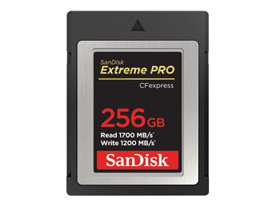 Carte mémoire flash - 256 Go : CFexpress card, Lecture : 1700 Mo/s, Écriture : 1400 Mo/s, Avec SanDisk RescuePRO Deluxe