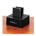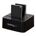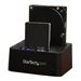 Dupliquez rapidement des disques durs, à des vitesses pouvant atteindre 28 Go par minute pour les SSD, sans devoir connecter votre ordinateur. Ce duplicateur offre un clonage de disques autonome, qui facilite la sauvegarde de vos données et reproduit des images exactes de vos disques. Vous pouvez également connecter la station d'accueil à votre ordinateur par l'USB 3.1 (10 Gb/s) pour connecter et échanger vos disques dans le cadre d'une solution de stockage évolutive.Clonez vos disques à une vitesse élevéeDupliquez un disque dur ou un SSD pour migrer efficacement votre système d'exploitation et vos données d'un disque à un autre ou pour créer une copie exacte de sauvegarde de vos données importantes. Ce duplicateur de disques vos permet de créer un clone de votre disque secteur par secteur, y compris les informations de partition et de secteur d'amorçage. Cela garantit l'intégrité et la cohérence des données dans les applications sensibles, telles que la récupération des données.Ce duplicateur vous permet de gagner un temps précieux avec des vitesses de duplication de SSD pouvant atteindre jusqu'à 28 Go par minute. Vous pouvez facilement dupliquer un HDD ou SSD SATA de 2,5 pouces ou 3,5 pouces sans devoir connecter le duplicateur à un ordinateur hôte.Transférez rapidement des fichiers entre votre station d'accueil et votre PCCe duplicateur constitue aussi une solution de stockage externe, qui vous permet de connecter vos disques par l'USB 3.1 Gen 2 avec la prise en charge de l'UASP, et d'atteindre des vitesses de transfert de données rapides jusqu'à 10 Gb/s. Chaque fente de disque prend individuellement en charge un disque dur de grande capacité ou un SSD, testé jusqu'à 6 To.Comprend deux câbles USB favorisant la polyvalenceCe duplicateur est livré avec deux câbles USB, ce qui étend ses possibilités d'utilisation avec les derniers modèles d'ordinateurs portables et de tablettes équipés d'un port USB-C , ainsi qu'avec des appareils plus anciens. Il comprend un câble USB-C vers B et un câble USB-A vers B. Ce duplicateur est également compatible avec les ports USB-C Thunderbolt 3.Conçu pour une utilisation facileLe chargement de cette station d'accueil se fait par le dessus (style grille-pain), ce qui facilite l'insertion de vos disques. Elle comprend aussi des trappes qui stabilisent les disques insérés dans le slot et empêchent les objets étrangers de pénétrer dans les fentes des disques.Ne nécessitant ni outil ni tiroir, ce duplicateur vous permet d'insérer vos disques rapidement et facilement. Les indicateurs à LED vous indiquent, d'un seul coup d'il, l'état actuel du processus de duplication, y compris le mode de duplication spécifique, l'état du HDD et la progression du clone. Le bouton d'éjection de HDD permet de retirer les disques rapidement et simplement.Le modèle SDOCK2U33RE prend en charge divers adaptateurs pour disques durs, ce qui offre une plus grande compatibilité avec différents types de disques lors d'applications de duplication et de connexion. Les adaptateurs StarTech de la liste ci-dessous ont subi des tests spécifiques pour que leur compatibilité avec ce duplicateur de disque dur puisse être garantie :[%product id="SAT2IDEADP" text="Adaptateur pour disque IDE SATA vers 2,5 pouces ou 3,5 pouces"%] - SAT2IDEADP[%product id="SAT2MSAT25" text="Adaptateur SATA 2,5 pouces vers Mini SSD SATA"%] - SAT2MSAT25[%product id="SAT32M225" text="Adaptateur SSD M.2 vers SATA 2,5 pouces"%] - SAT32M225Le modèle SDOCK2U313R bénéficie de la garantie StarTech.com de 2 ans et de l'assistance technique à vie gratuite.