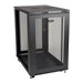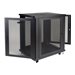 L'armoire 18U SmartRack haut de gamme SR18UB de Tripp Lite dispose de fonctionnalités conçues pour simplifier les installations et la maintenance des équipements en rack : ports d'acheminement des câbles haut et bas, porte perforée et panneaux latéraux pour assurer un flux d'air efficace, rails de montage verticaux ajustables et plus encore. Et en tant que membre de la famille SmartRack, le SR18UB est compatible avec la gamme étendue d'accessoires de montage en rack de Tripp Lite, vous permettant de personnaliser votre solution pour répondre à toutes les exigences. Le SR18UB est expédié complètement assemblé pour une installation rapide et bénéficie d'une garantie de 5 ans. Le SR18UB est compatible avec tous les équipements en rack standard de 19 pouces (48,3 cm) et dispose de paires de rails verticaux avant et arrière avec des trous de montage carrés. Les rails sont réglables par pas de 0,25 pouces (6,35 cm) pour s'adapter aux profondeurs d'équipements de 3 à 32,5 pouces (7,62 à 82,6 cm), idéal pour une installation standard de serveur. Le réglage est rapide et pratique : dévissez simplement les rails, faites-les coulisser à la profondeur souhaitée et remettez les vis. Les rails disposent de trous de montage carrés et peuvent supporter jusqu'à 1,000 livres (453 kg) d'équipements avec le matériel d'installation inclus. Chaque espace du rack du boîtier est numéroté pour faciliter la consultation. Avec une porte avant verrouillable réversible et des panneaux latéraux verrouillables amovibles, le SR18UB assure une installation sûre et sécurisée pour tous les équipements. Cela empêche les accès non autorisés aux équipements installés tout en facilitant les inspections, la maintenance et le remplacement des équipements pour le personnel autorisé. Le boîtier répond à toutes les exigences pour la conformité PCI DSS. Les panneaux supérieur et inférieur du SR18UB sont dotés d'orifices d'aération conçus pour permettre d'évacuer l'air chaud du boîtier et de faire pénétrer de l'air frais par convection. Ils prennent également en charge l'installation de ventilateurs de boîtier standard fournis par l'utilisateur (Tripp Lite SRFANWM). Les panneaux supérieur et inférieur disposent également de ports pour l'acheminement des câbles. Pour simplifier le déploiement, le SR18UB dispose d'un kit de roulettes en accessoire composé de 4 roulettes et de tout le matériel d'installation nécessaire. Avec les roulettes installées, le SR18UB peut être déplacé facilement dans l'emplacement souhaité, puis fixé solidement en place en réglant les niveleurs de l'unité. Remarque : les roulettes sont prévues pour des ajustements de position mineurs dans la zone d'installation finale uniquement et sont pas conçues pour déplacer le boîtier sur de grandes distances.