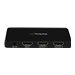 Divisez une source audio/vidéo HDMI pour deux écrans HDMI simultanément avec prise en charge de résolutions pouvant atteindre 4KLe répartiteur HDMI 4K à 2 ports ST122HD4K vous permet de partager deux écrans ou vidéoprojecteurs HDMI avec un périphérique source audio-vidéo HDMI, comme un ordinateur, un lecteur Blu-ray ou un boîtier décodeur de télévision par câble.Prenant en charge les résolutions Ultra HD (4K), le répartiteur HDMI offre une qualité d'image remarquable, quatre fois supérieure à la résolution haute définition 1080p à 30 Hz. Le répartiteur 4K est également rétrocompatible avec les révisions plus anciennes de la norme HDMI et prend en charge les appareils vidéo HDMI offrant une résolution 1080p/720p. Même si la vidéo 4K ne vous paraît pas nécessaire aujourd'hui, grâce au ST122HD4K, vous serez prêt à profiter des écrans de demain.Gagnez du temps en configurant votre répartiteur avec émulation EDID de manière à ce que tous vos paramètres natifs, comme la résolution et la fréquence de rafraîchissement, soient transmis entre votre source vidéo et les écrans. L'émulation EDID assure une compatibilité optimale avec votre écran 4K, pour une installation plug-and-play pratique.Construit en aluminium solide, le boîtier du répartiteur HDMI est suffisamment solide pour empêcher l'unité de se déplacer ou de glisser lorsque vous bougez les câbles HDMI fixés. Par ailleurs, le format compact permet une intégration facile à toute application d'affichage numérique.