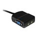 Le répartiteur vidéo VGA 2 ports ST122LEA doté de port audio et d'alimentation USB est le modèle le plus compact ; il permet l'affichage par un ordinateur d'une vidéo VGA sur deux moniteurs, depuis une seule source. La prise en charge des résolutions d'au plus 2048x1536 et de l'audio/stéréo fait de cet appareil le modèle idéal pour les salles de classe, les salons ou tout environnement requérant la diffusion de haute qualité d'une vidéo sur plusieurs écrans. Ce répartiteur VGA peut être alimenté par votre PC source ou votre lecteur média à l'aide d'un port USB disponible. Il n'est pas nécessaire d'utiliser un adaptateur d'alimentation conventionnel, facilitant ainsi l'installation en cas d'indisponibilité des prises de courant. Le répartiteur inclut également un circuit booster intégré qui vous permet de localiser les moniteurs VGA à une distance de 60 mètres de votre ordinateur. Bénéficie de la garantie StarTech.com de 2-ans et de l'assistance technique GRATUITE à vie.
