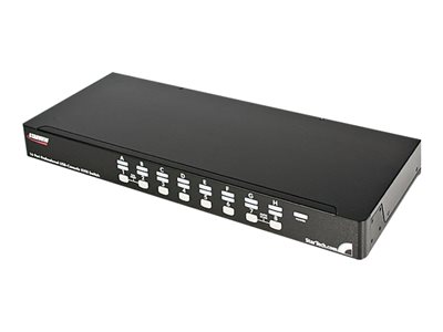 Le commutateur KVM 16 ports PS/2 USB monté sur bâti 1U, référence SV1631DUSBGB avec OSD est un outil fiable de gestion de l'ordinateur qui vous permet de contrôler au plus 16 ordinateurs connectés USB ou PS/2, à partir d'un seul ensemble clavier, souris et moniteur. Le commutateur KVM permet un contrôle optimal, vous permettant de basculer entre plusieurs ordinateurs à l'aide des touches de raccourci ou des boutons poussoir du panneau avant. Le menu OSD convivial offre un accès rapide aux options de configuration. Le commutateur 16 ports est le complément idéal dans une salle de serveur, il peut être monté sur un bâti 1U et peut être utilisé en tandem avec plusieurs commutateurs KVM, permettant ainsi de contrôler jusqu'à 136 ordinateurs à partir de ce seul commutateur. Ce commutateur KVM USB PS/2 de haute qualité bénéficie d'une garantie StarTech.com de 3 ans et d'une assistance technique gratuite à vie.