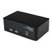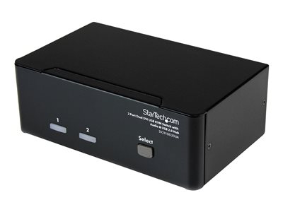 Le commutateur KVM USB Dual DVI 2 ports, référence SV231DD2DUA, permet le partage entre deux PC dotés de deux sorties vidéo DVI, de deux écrans, un microphone et un ensemble de haut-parleurs, un clavier et une souris ainsi que deux autres périphériques USB.Solution idéale pour les concepteurs graphiques, les designers CAD/CAM ou les institutions pédagogiques et financières, le commutateur KVM double écran vous permet de commuter instantanément entre les PC à écran DVI double par un simple appui sur un bouton, tout en maintenant une qualité vidéo professionnelle sur les deux moniteurs. Le commutateur double DVI est également doté d'un port concentrateur USB intégré qui permet le partage de périphériques USB 2.0, tels que les clés USB, les disques durs externes ou les web cam, entre des systèmes reliés, supprimant ainsi les coûts engendrés par l'achat de périphériques supplémentaires.Remarque : Ce commutateur KVM ne prend en charge que la signalisation DVI-D (numérique). Dans la mesure du possible et pour assurer un bon fonctionnement, il est recommandé d'utiliser des câbles DVI-D pour tous les branchements entre le PC et le KVM ainsi qu'entre le KVM et la console. Veuillez contacter l'assistance technique si vous avez besoin d'aide pour trouver les câbles qui conviennent.Bénéficie de la garantie StarTech.com de 3 ans et de l'assistance technique gratuite à vie.