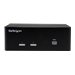 Ce commutateur KVM USB vous permet de brancher deux ordinateurs comportant chacun deux sorties VGA à un poste de travail à deux écrans. Vous pouvez basculer la station de travail entre les ordinateurs, ainsi que deux périphériques USB, des haut-parleurs 3,5 mm et un microphone. Optimisez votre productivité avec deux sorties vidéo Ce commutateur KVM, qui prend en charge deux sorties vidéos VGA et deux ordinateurs, poussera votre productivité au maximum. Non seulement vous accéderez à plusieurs ordinateurs, mais vous pourrez utiliser deux écrans VGA pour diffuser sur chacun d'entre eux du contenu indépendant afin d'augmenter votre productivité tout en profitant d'un fonctionnement multitâche. Le port VGA prend en charge des résolutions jusqu'à 1920 x 1200, pour obtenir une zone d'affichage maximum. Accès multi-système Ce commutateur KVM propose deux sorties vidéo, la prise en charge du clavier et de la souris, ainsi qu'un hub USB à 2 ports permettant d'ajouter deux périphériques de plus. C'est dire s'il est parfait pour accéder à deux systèmes distincts à partir du même poste de travail. Parce qu'il prend en charge votre poste de travail et deux périphériques supplémentaires, ce KVM est idéal pour le contrôle serveur, ce qui simplifie l'accès à de multiples systèmes informatiques. Utilisation pratique Ce commutateur KVM 2 ports garantit un fonctionnement sans effort grâce à la commande intuitive par raccourcis claviers. Cette solution simple mais complète pour passer d'un ordinateur connecté à l'autre s'utilise également en mode manuel grâce aux boutons d'accès facile situé sur le devant. Le modèle SV231DVGAU2A bénéficie de la garantie StarTech.com de 2 ans et de l'assistance technique à vie gratuite.