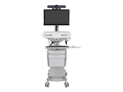 Caractéristiques | | Roulettes à blocage, orientation verticale et horizontale, boîte de câbles, revêtement antimicrobien, poignée intégrée, système de verrouillage du tiroir (ADS), panier de stockage, repose-poignet, cordon d'alimentation spirale, support pour souris, plateau de clavier à inclinaison arrière, plateau pour souris gauche/droite, interface utilisateur pour système d'alimentation, logiciel StyleLink, étagère pour caméra, support de codec, rallonge multiprise de classe médicale, technologie de mouvement levé-pivoté CF, port Ethernet externe, voyant DEL orange de clavier, prise mise à la terre