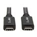Le câble USB-C Eaton Tripp Lite Series offre des performances avec un taux de transfert de données de 10 Gbps, garantissant une synchronisation rapide et efficace des fichiers. Ce câble prend en charge la technologie Power Delivery, ce qui lui permet de fournir jusqu'à 5 A et 100 W aux appareils compatibles. De construction robuste, avec des connecteurs plaqués or et nickel, ce câble est conçu pour durer et réduire la perte de signal.Parfait pour la charge et le transfert de données, le câble compatible USB 3.1 Gen 2 / Thunderbolt 3 est équipé pour une variété d'applications. Son diamètre extérieur de 5,2 mm offre une prise en main confortable, tandis que l'emballage en sachet polyéthylène améliore la portabilité et l'organisation. Ce câble répond à de nombreuses normes de conformité, notamment Plug-and-Play, FCC, RoHS, USB-IF, REACH et VW-1, ce qui en fait un choix fiable pour n'importe quelle installation.
