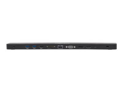 Interfaces | | 1 x audio / vidéo - sortie DisplayPort - DisplayPort 20 broches 1 x audio / vidéo - sortie HDMI - HDMI de 19 broches de type A 1 x vidéo - sortie VGA - 15 broches HD D-Sub (HD-15) 1 x réseau - 1000Base-T - RJ-45 2 x SuperSpeed USB 3.0 - USB 9 broches type A 1 x audio - sortie - mini-phone stereo 3.5 mm 1 x USB-C avec livraison de puissance - 24 pin USB-C 1 x casque micro - entrée / sortie - mini-phone stereo 3.5 mm 1 x USB-C / Thunderbolt 3 - 24 pin USB-C SuperSpeed USB 3.0 with Battery Charging 1.2 - USB 9 broches type A USB 2.0