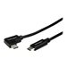 Ce câble USB-C coudé à angle droit est particulièrement pratique pour charger votre appareil téléphone ou tablette dans votre véhicule, ou pour accéder à votre appareil mobile lorsque celui-ci est connecté à un chargeur mural ou un ordinateur portable. Le câble peut également être utilisé pour charger votre ordinateur portable sur un chargeur secteur.Connexion facileLe câble est doté d'un connecteur USB Type-C coudé à angle droit permettant une connexion aux ports difficiles d'accès, idéal lorsque vous souhaitez charger vos appareils mobiles dans votre véhicule.Pour utiliser votre appareil mobile lorsqu'il est en charge, positionnez le câble sur la gauche ou la droite de votre appareil, en mode portrait ou paysage. Lorsque votre appareil mobile est en charge, vous pouvez l'utiliser pour envoyer des messages, travailler ou jouer, sans être gêné par le câble.Le connecteur coudé empêche également les torsions du câble et de lui faire subir une tension excessive pour atteindre la prise. Il permet un positionnement plus naturel au point de connexion, ce qui empêche toute tension inutile et protège le câble et le port de l'appareil contre d'éventuelles détériorations.Alimentez votre ordinateur portableGrâce à sa capacité d'alimentation maximale de 3 A, vous pouvez utiliser ce câble USB Type-C pour alimenter un ordinateur équipé de ports USB-C, tel qu'un Apple MacBook ou un Chromebook Pixel . Connectez simplement le câble à votre ordinateur portable USB-C et à un chargeur mural USB-C.Conservez-le comme câble de secours pendant vos voyagesRemplacez le câble USB-C fourni avec votre appareil mobile ou conservez l'un des deux comme câble de secours pendant vos voyages. Vos appareils mobiles et votre ordinateur portable seront ainsi toujours prêts à être utilisés tout au long de votre trajet.Le modèle USB2CC1MR de StarTech.com bénéficie de la garantie à vie pour une fiabilité à toute épreuve.