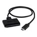 Profitez du port USB-C du tout dernier modèle de MacBook, Chromebook Pixel ou autre ordinateur portable pour créer un accès rapide à votre disque externe. Cet adaptateur de style câble permet d'utiliser le port USB Type-C pour brancher directement votre ordinateur portable à un SSD ou à un disque dur de 2,5 po afin d'y accéder rapidement par USB 3.1 Gen 2 (10 Gb/s). Voici un moyen rapide et facile de brancher vos disques SATA sans accessoires supplémentaires.Ultraportable, sans aucune source d'alimentation externeOù que vous soyez, vous pourrez accéder rapidement à vos précieuses données grâce à cet adaptateur de style câble. Et puisqu'il est alimenté par USB, aucun adaptateur externe n'est nécessaire. Son design compact et léger permet de le ranger facilement dans l'étui de transport ou le sac de votre ordinateur portable.Accès pratique aux disquesLe câble adaptateur accélère le passage entre les disques durs ou les SSD sans qu'il soit nécessaire de les installer dans un boîtier. Vous pourrez rapidement copier ou récupérer des données d'un SSD/HDD de 2,5 pouces. Il vous permet d'accéder facilement à votre disque dur afin de migrer et de sauvegarder des données, et de cloner les disques à la vitesse de l'USB 3.1 Gen 2.Branchez-vous facilement par USB-CConvivial, le connecteur USB Type-C intégré est petit et réversible, ce qui facilite son insertion. La prise se branche de n'importe quel côté. Moins de risques d'abîmer vos ports et moins d'énervement en vue !Profitez de la rapidité de l'USB 3.1 Gen 2Avec ses vitesses de transfert pouvant atteindre 10 Gb/s, soit deux fois la vitesse de l'USB 3.0 (USB 3.1 Gen 1), l'USB 3.1 Gen 2 est synonyme d'augmentation de la bande passante et de la vitesse. Il vous permet de profiter des qualités exceptionnelles des tout derniers modèles de SSD et de disque dur, tout en réduisant le ralentissement du transfert de données.Le modèle USB31CSAT3CB bénéficie de la garantie StarTech.com de 2 ans et de l'assistance technique à vie gratuite.