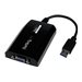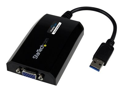 Carte Vidéo et Graphique Externe USB 3.0 - Multi-Moniteur - Alimentation par USB - Compatible avec Mac et WindowsL'adaptateur USB 3.0 vers VGA USB32VGAPRO transforme un port USB 3.0 de votre ordinateur portable ou de bureau en sortie VGA avec la prise en charge d'un signal vidéo haute résolution 1920 x 1200/1080p, offrant ainsi une solution vidéo externe pratique qui ajoute une capacité multi-écrans à un Mac ou PC compatible USB 3.0 (performance optimale avec USB 3.0 et rétrocompatibilité avec USB 2.0).Exploitant l'interface SuperSpeed USB 3.0 à bande passante élevée (5 Gb/s) et alimenté via chipset DisplayLink, le USB32VGAPRO est notre adaptateur USB vers VGA le plus performant, capable de fournir un contenu haute résolution à un écran VGA. La carte graphique externe peut être utilisée pour refléter votre bureau principal et montrer la même image sur chacun des écrans ou pour étendre votre bureau afin de doubler votre espace de travail et d'augmenter votre productivité.Configuration recommandée du système :[HTMLLINEBREAK]Unité centrale : Quad Core 2,4 GHz ou plus (i5 recommandé)[HTMLLINEBREAK]RAM : 4 Go ou plus[HTMLLINEBREAK]Port USB 3.0 (rétrocompatible avec USB 2.0).