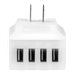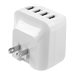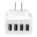 Ce chargeur 4 ports vous permet de charger tous vos appareils mobiles où que vous soyez. Chez vous, au bureau ou en voyage à l'étranger, vous pourrez charger 4 appareils à la fois.Un adaptateur d'alimentation universel, idéal pour voyager à l'étrangerLe chargeur mural inclut un adaptateur d'alimentation universel qui vous permet de vous brancher sur la plupart des prises, presque partout dans le monde. Quelle que soit votre destination, vos appareils mobiles seront chargés et prêts à l'emploi.De plus, grâce à son design compact, ce chargeur est l'accessoire mobile idéal pour un bagage cabine. Le chargeur mural USB portable possède une prise pliable pour l'Amérique du Nord, ce qui permet de le loger facilement dans un sac comme celui de votre ordinateur portable. Vous pourrez facilement connecter la prise internationale nécessaire pour charger vos appareils une fois à destination.Une alimentation partagée permettant de charger simultanément jusqu'à 4 appareilsLe chargeur multi-ports est doté de la technologie Smart IC qui permet d'identifier le type d'appareil connecté à chaque port. En détectant le type d'appareil branché, le chargeur envoie la charge optimale spécifique à chaque appareil.De plus, le chargeur offre une puissance maximale de 34 watts, soit 6,8 ampères partagés entre les quatre ports. Vous pourrez donc charger deux tablettes et deux téléphones simultanément.Un seul chargeur pour tous vos appareils mobiles, compatible avec la plupart des téléphones et tablettesLe chargeur prend en charge la spécification de charge de pile USB 1.2, ce qui garantit la compatibilité avec une gamme étendue d'appareils comme l'iPhone et l'iPad d'Apple, la tablette Microsoft Surface , le Samsung Galaxy Tab , les téléphones Nexus et plus encore.Une station de charge dédiée pour votre bureauGardez le chargeur sur votre bureau et utilisez-le comme une station de charge dédiée pour vos appareils mobiles à la maison ou au bureau. Le fait de regrouper vos appareils USB sur un seul chargeur multi-ports offre une solution plus efficace tout en libérant de l'espace, car cela vous évite d'utiliser plusieurs prises murales ou multiprises.Protection pour vos appareils : mesures de sécurité intégréesLa station de charge USB dispose de mesures de sécurité intégrées pour protéger vos appareils des surchauffes, surtensions ou autres courts-circuits. Si vous dépassez la limite de 34 W, le courant envoyé vers les appareils connectés se coupe et le chargeur se réinitialise jusqu'à atteindre des niveaux normaux.Le modèle USB4PACWH bénéficie d'une garantie de 2 ans pour des performances d'une fiabilité absolue.Remarque : Certains appareils mobiles, tels que des modèles Samsung ou BlackBerry , utilisent des connecteurs d'alimentation propriétaires qui ne sont pas compatibles avec des chargeurs tiers. Veuillez consulter la documentation du fabricant pour vérifier que le modèle USB4PACWH est compatible avec votre appareil.