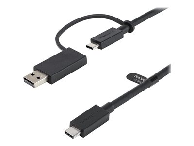 D''une longueur de 1 m, ce câble hybride USB-C vers C, USB 3.2 Gen 2 (10 Gb/s) avec adaptateur USB-A vers C, USB 3.2 Gen 1 (5 Gb/s) vous permet de connecter un périphérique USB Type-C , tel qu''une station d''accueil PC, un disque dur, une tablette ou un périphérique mobile, au port USB-C ou USB-A de votre ordinateur hôte. Ce câble est également compatible avec les ports Thunderbolt 3.Remarque : lorsqu''il est utilisé avec un hôte USB-A, ce câble fonctionne uniquement avec les stations d''accueil prenant en charge DisplayLink.Chargez plus rapidement vos appareils USB Type-CLorsqu''il est utilisé avec une source d''alimentation USB-C compatible PD 3.0, le câble USB-C vers C de 1 mètre prend en charge jusqu''à 100 W (5 A) d''alimentation pour charger une tablette, un smartphone ou un ordinateur portable USB-C ou Thunderbolt 3.Lorsqu''il est associé au câble USB-C vers C, l''adaptateur USB-C vers USB-A prend également en charge jusqu''à 15 W (5 V, 3 A) d''alimentation pour recharger vos appareils à partir d''un chargeur mural USB-A, d''un chargeur de voiture ou d''une batterie externe : il est ainsi idéal pour les personnes en déplacement, afin de bénéficier de connexions simples sans s''encombrer.Connectez vos périphériques USB 3.1Le câble USB-C vers C USB 3.2 Gen 2 offre un débit de données de 10 Gb/s, ce qui vous permet de synchroniser vos périphériques USB Type-C en un rien de temps. Vous pourrez également connecter vos périphériques USB 3 (3.0, 3.1 ou 3.2), comme des boîtiers de disque dur et des stations d''accueil, à votre ordinateur portable USB-C ou TB3.L''adaptateur USB-C vers A, USB 3.2 Gen 1, utilisé avec le câble USB-C vers C, offre un débit de données de 5 Gb/s. Gagnez du temps sur le transfert et la sauvegarde des données de vos périphériques USB-C vers votre hôte USB-A, afin de vous concentrer davantage sur vos projets et vos présentations.Câble de station d''accueil PC hybrideUtilisez ce câble avec votre station d''accueil PC hybride USB-C ou votre hub USB-C pour connecter votre ordinateur portable, votre tablette, votre smartphone ou vos clés USB. Ce câble est également fourni en tant qu''accessoire pour les stations d''accueil PC à deux écrans (4K 60 Hz) hybrides StarTech.com, telles que les modèles DK30C2DPEP et DK30C2DPPD.Le modèle USBCCADP bénéficie de la garantie StarTech.com de 2 ans pour une fiabilité à toute épreuve.