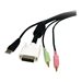 Ce câble KVM USB DVI 4 en 1 avec audio et microphone USBDVI4N1A6 de 1,8 m offre une qualité vidéo DVI avec une souris et un clavier USB, une sortie audio et une connexion pour microphone 3,5 mm en un seul câble compact.Le câble KVM 4 en 1 est une solution pratique et abordable qui est adaptée aux commutateurs KVM USB DVI, vous permettant de partager un ensemble de périphériques USB entre deux ordinateurs configurés pour une sortie haute définition.Bénéficie d'une garantie à vie StarTech.com.Compatibilité :Les commutateurs KVM StarTech.com compatibles sont disponibles dans la section Accessoires.Modèles Aten (CS1642, CS1644, CS1784, CS1782, CS1762, CS1764) Modèles Avocent (2SVDVI10-001, 4SVDVI10-001, SV4UAD, SC420, SC440, SC540) Modèles Belkin (F1DN102D, F1DN104D, F1DD102L, F1DD104L) Modèles Cables to go (52047, 52048).