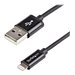 Le câble Lightning vers USB noir 1 m USBLT1MB pour iPhone , iPod et iPad est proposé en noir pour s'adapter aux appareils mobiles noirs. Il offre une solution fiable pour la synchronisation et le chargement de vos appareils Apple de nouvelle génération via le port USB de votre ordinateur PC ou Mac .De plus, le connecteur Lightning 8 broches réversible peut être branché sur votre appareil iOS qu'il soit à l'envers ou à l'endroit, il n'y a en effet pas de sens pour insérer le câble dans l'appareil.Ce câble durable respecte les normes MFi d'Apple et bénéficie de la garantie de 2 ans de StarTech.com, pour une performance fiable.